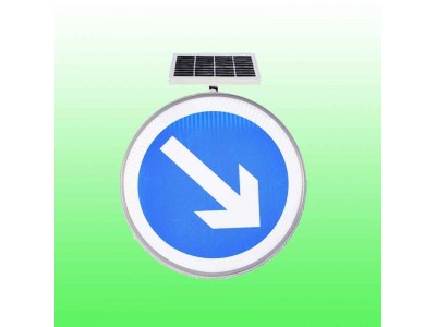 右侧行驶太阳能标志牌是以多晶硅太阳能板、蓄电池组件为能源,它利用太阳能板将白天的阳光转换成电能贮存于蓄电池中,当夜幕降临、视线昏暗或雨雾天气等视线不佳情况下,右侧行驶标志上的发光二极管自动启动发光,通过LED发出亮光来点亮图案轮廓,传达前方道路交通信息。