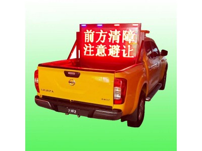 别称:高速事故处理皮卡车LED屏,巡逻车LED显示屏,路政皮卡双色屏,高速作业皮卡LED电子屏
